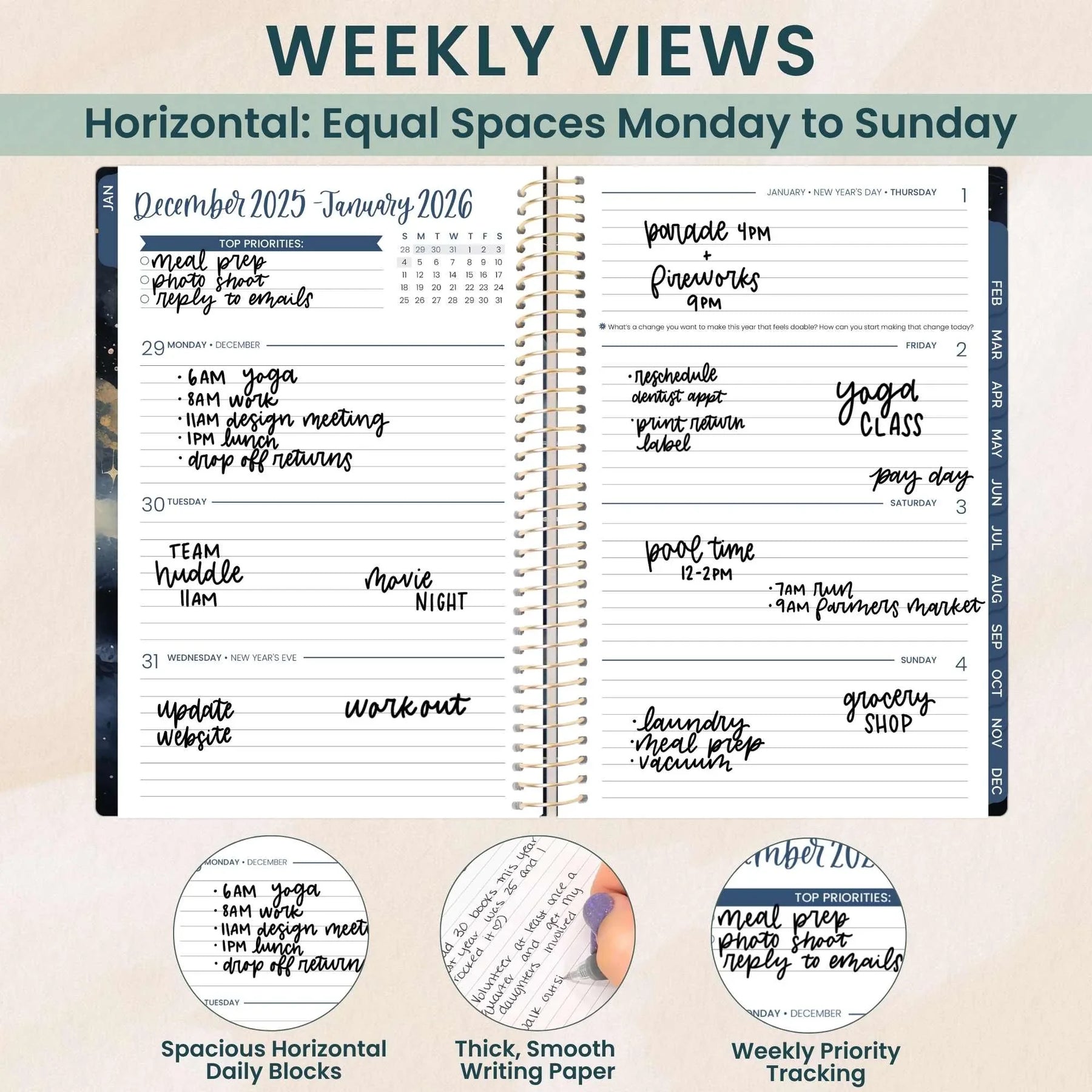 Your go-to companion for turning 2026 into your most organized year yet. This beloved 5.5″ × 8.25″ soft-cover planner blends functionality with flair—featuring monthly overviews, weekly spreads, habit trackers, and life-coaching prompts that transform daily chaos into purposeful progress. The gloss-laminated cover, lay-flat spiral binding, and silky 100 gsm paper make planning feel like a treat. Plus, you'll get a magnetic bookmark and sticker sheet to make it yours. With 20 wildflower-inspired designs to choose from, planning has never looked this good. Available in three sizes and hardcover too—find your perfect match in our full 2026 collection.