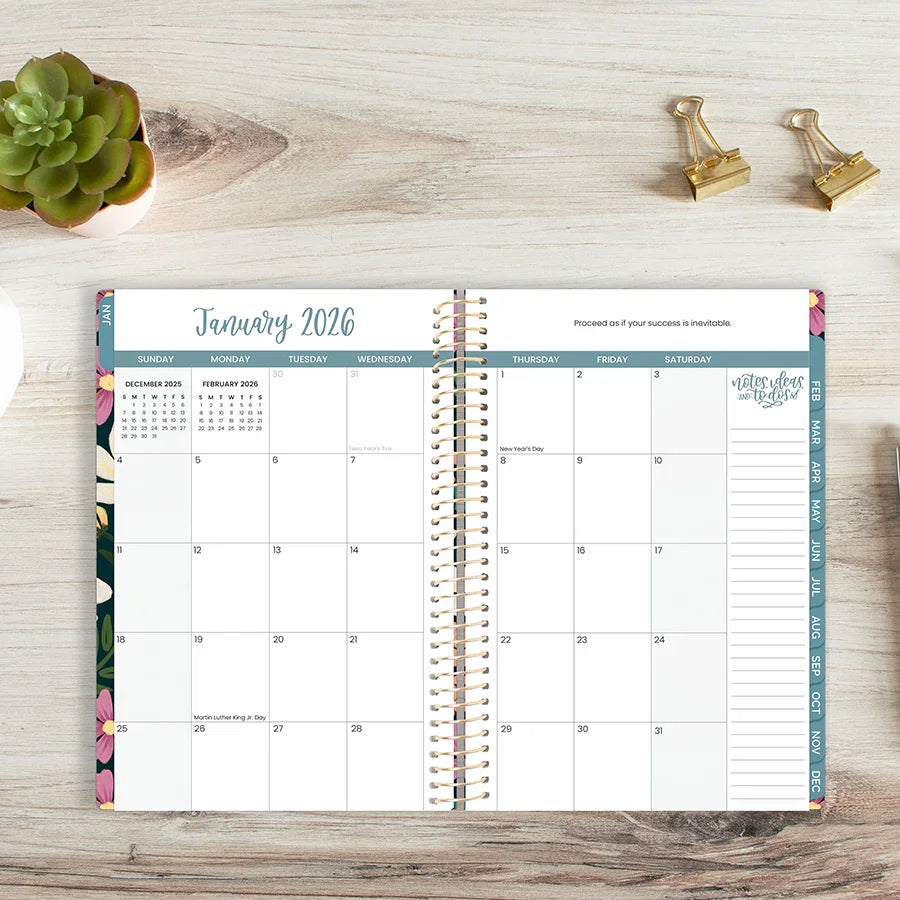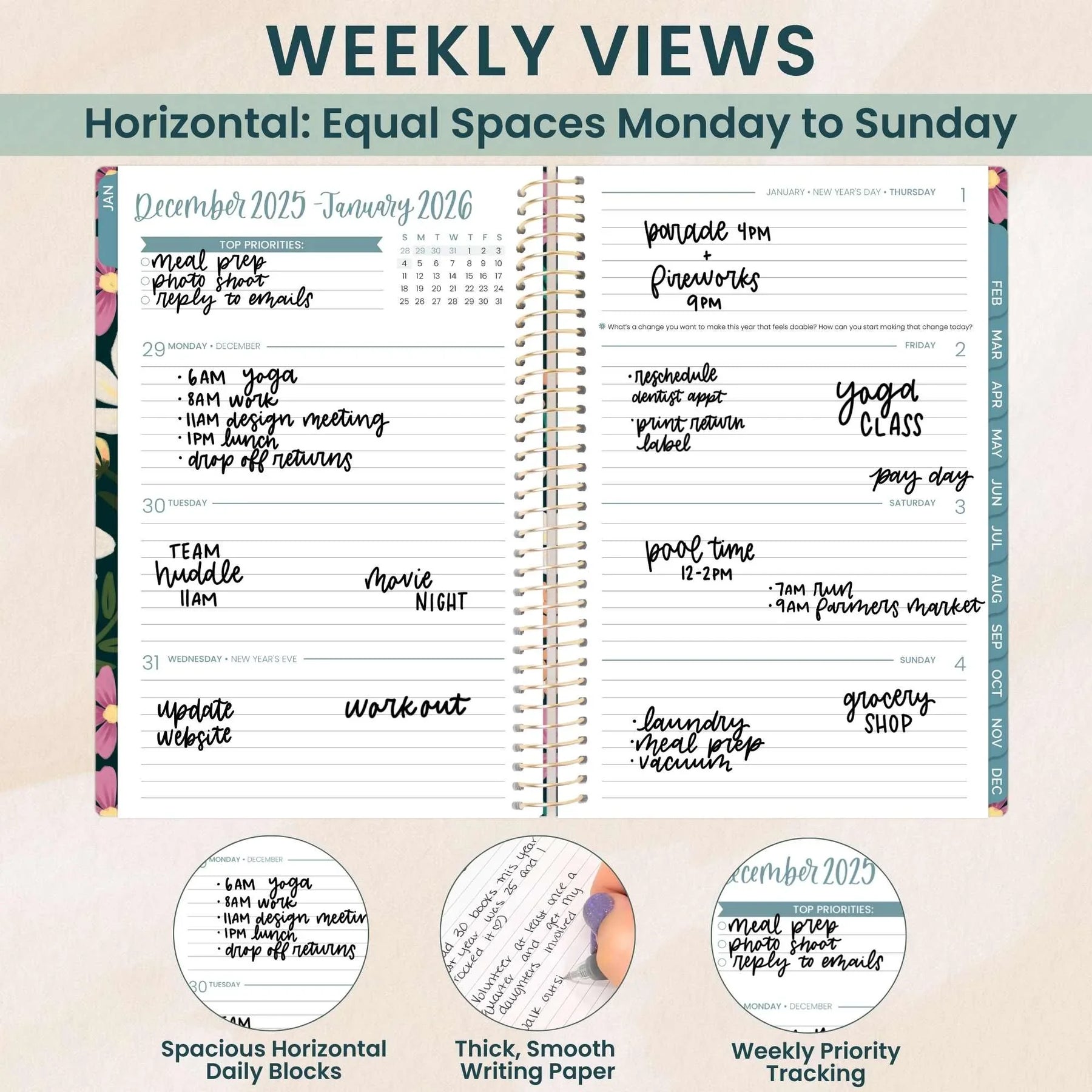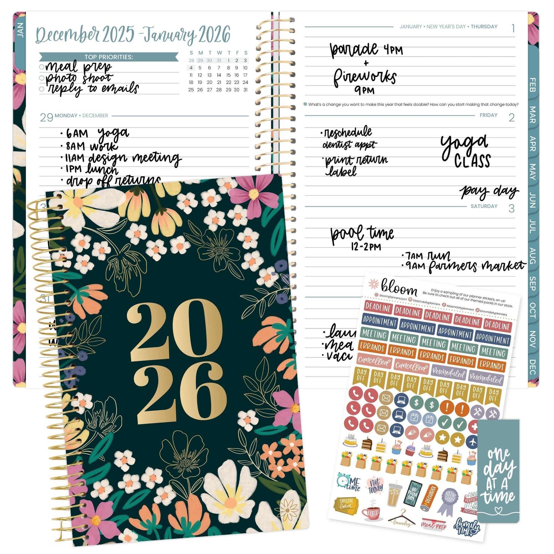 Your go-to companion for turning 2026 into your most organized year yet. This beloved 5.5″ × 8.25″ soft-cover planner blends functionality with flair—featuring monthly overviews, weekly spreads, habit trackers, and life-coaching prompts that transform daily chaos into purposeful progress. The gloss-laminated cover, lay-flat spiral binding, and silky 100 gsm paper make planning feel like a treat. Plus, you'll get a magnetic bookmark and sticker sheet to make it yours. With 20 wildflower-inspired designs to choose from, planning has never looked this good. Available in three sizes and hardcover too—find your perfect match in our full 2026 collection.