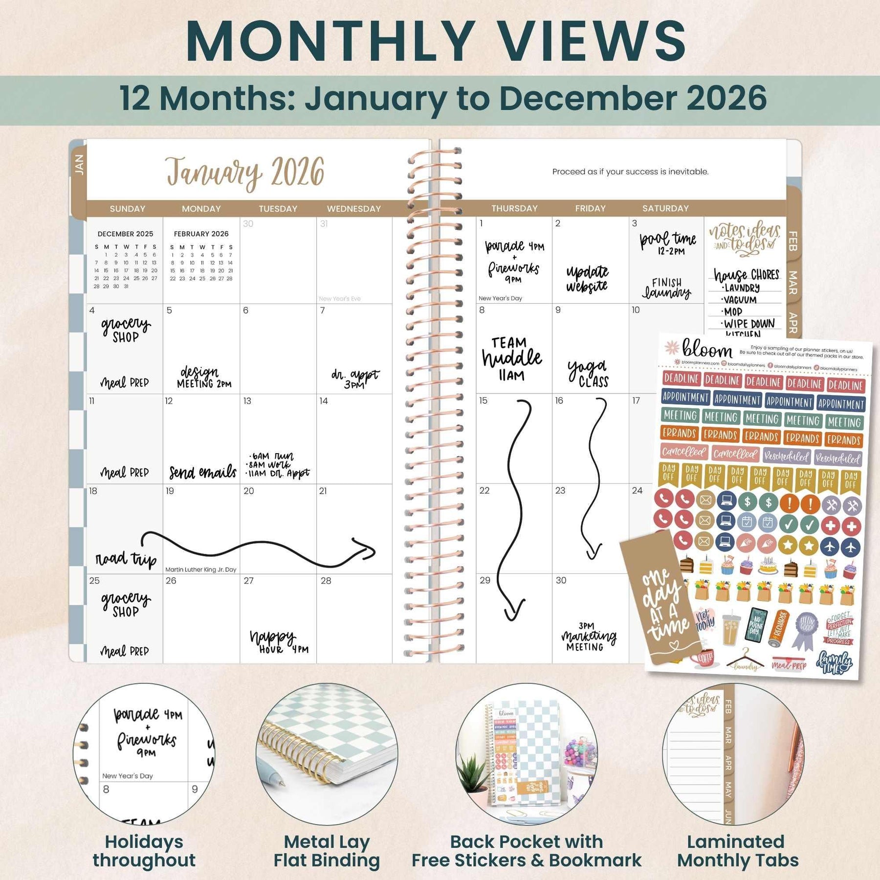 Your go-to companion for turning 2026 into your most organized year yet. This beloved 5.5″ × 8.25″ soft-cover planner blends functionality with flair—featuring monthly overviews, weekly spreads, habit trackers, and life-coaching prompts that transform daily chaos into purposeful progress. The gloss-laminated cover, lay-flat spiral binding, and silky 100 gsm paper make planning feel like a treat. Plus, you'll get a magnetic bookmark and sticker sheet to make it yours. With 20 wildflower-inspired designs to choose from, planning has never looked this good. Available in three sizes and hardcover too—find your perfect match in our full 2026 collection.