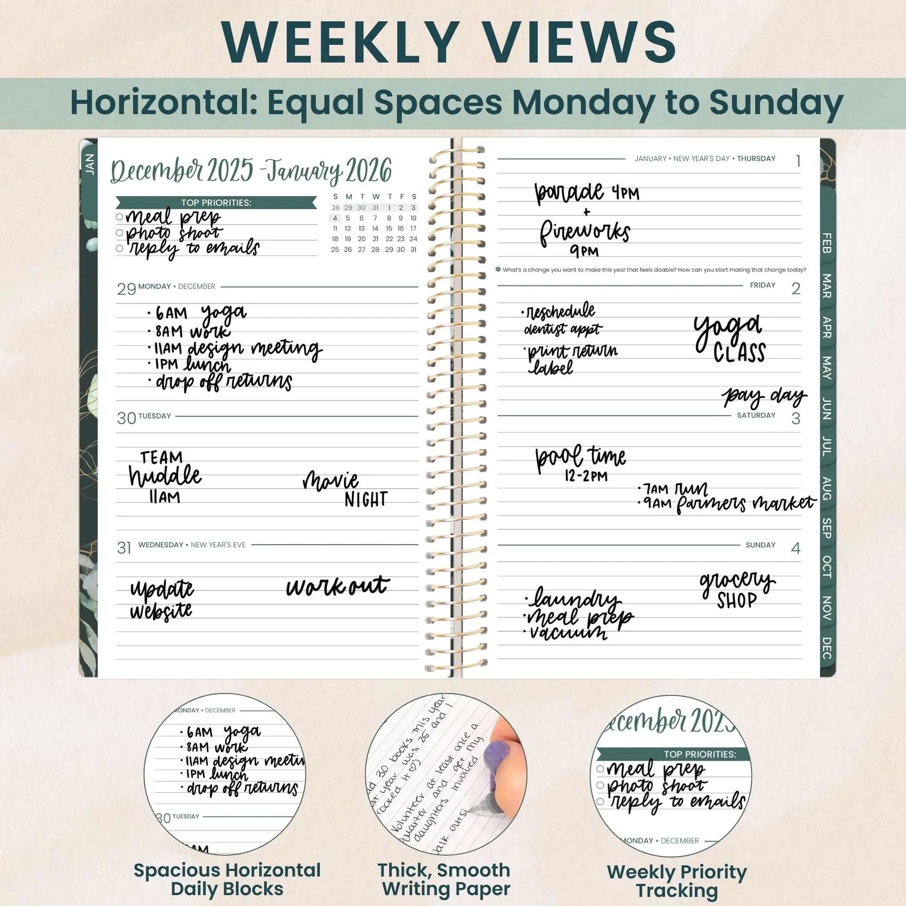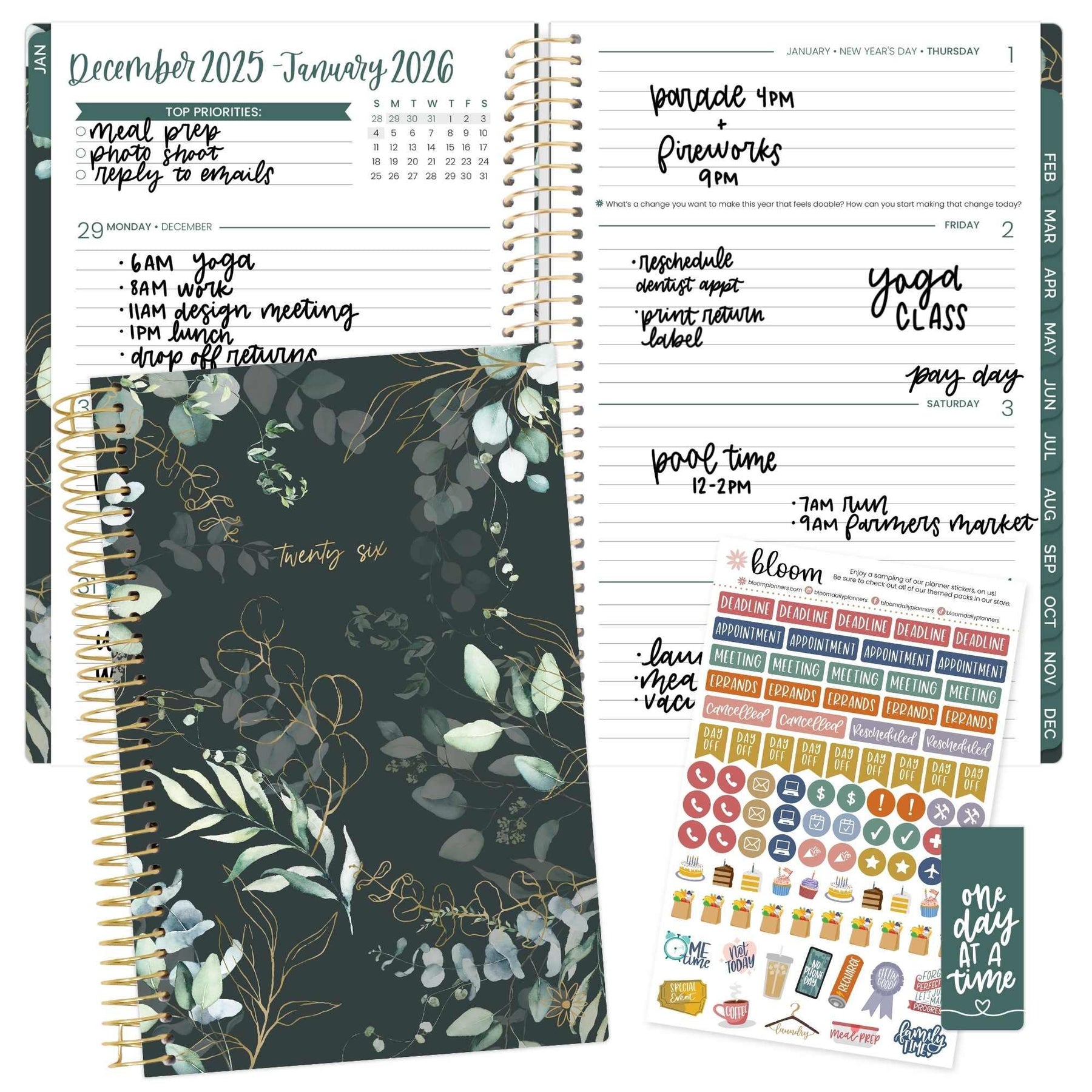 Your go-to companion for turning 2026 into your most organized year yet. This beloved 5.5″ × 8.25″ soft-cover planner blends functionality with flair—featuring monthly overviews, weekly spreads, habit trackers, and life-coaching prompts that transform daily chaos into purposeful progress. The gloss-laminated cover, lay-flat spiral binding, and silky 100 gsm paper make planning feel like a treat. Plus, you'll get a magnetic bookmark and sticker sheet to make it yours. With 20 wildflower-inspired designs to choose from, planning has never looked this good. Available in three sizes and hardcover too—find your perfect match in our full 2026 collection.