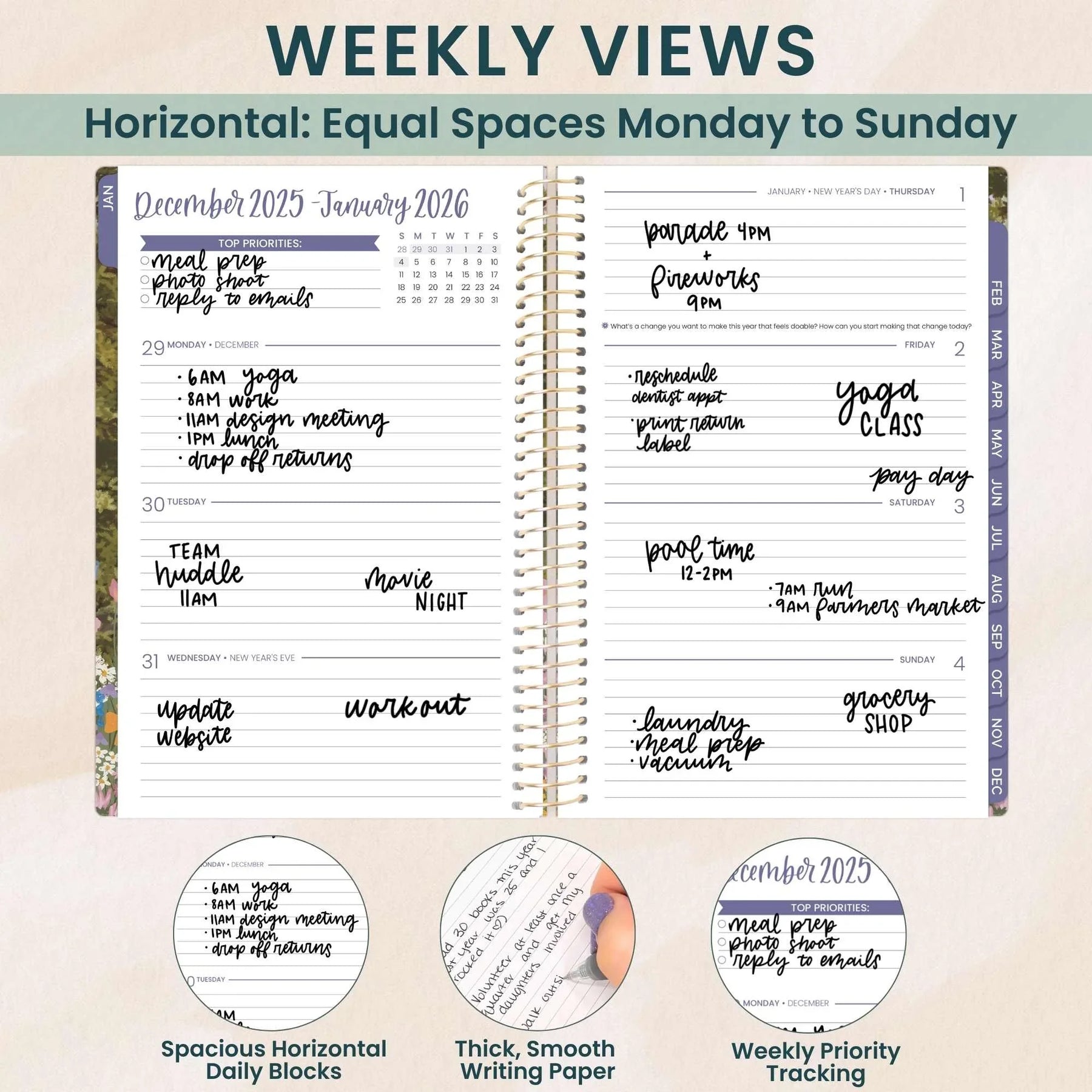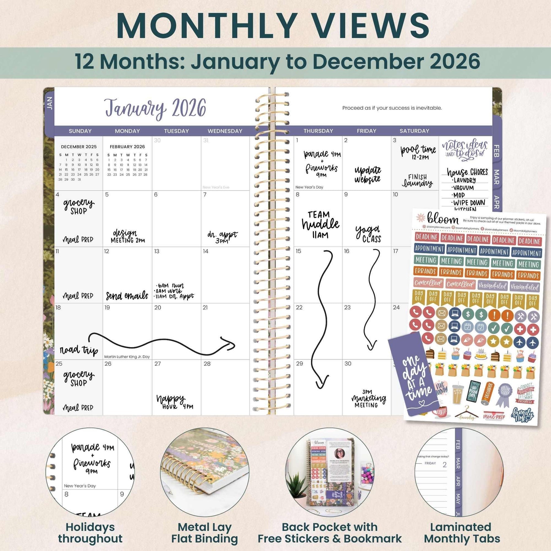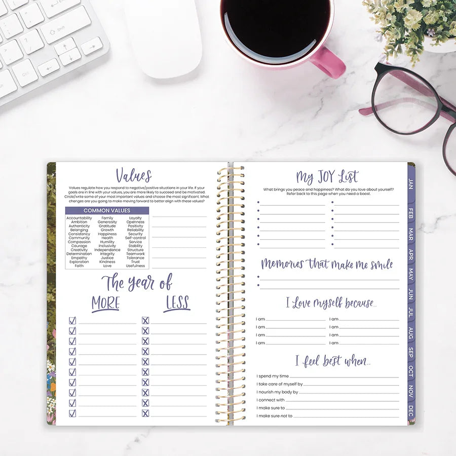 Your go-to companion for turning 2026 into your most organized year yet. This beloved 5.5″ × 8.25″ soft-cover planner blends functionality with flair—featuring monthly overviews, weekly spreads, habit trackers, and life-coaching prompts that transform daily chaos into purposeful progress. The gloss-laminated cover, lay-flat spiral binding, and silky 100 gsm paper make planning feel like a treat. Plus, you'll get a magnetic bookmark and sticker sheet to make it yours. With 20 wildflower-inspired designs to choose from, planning has never looked this good. Available in three sizes and hardcover too—find your perfect match in our full 2026 collection.