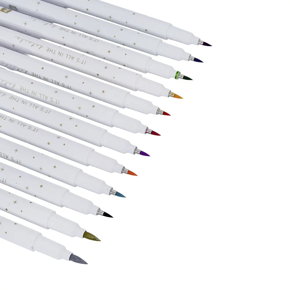 Perfect for precise, expressive strokes ✨ This set features an incredible color range with 10 intense shades + 2 metallics. The soft, brush-style medium tip lets you control pressure effortlessly—ideal for lettering, modern calligraphy, doodles, illustration, and creative decoration.