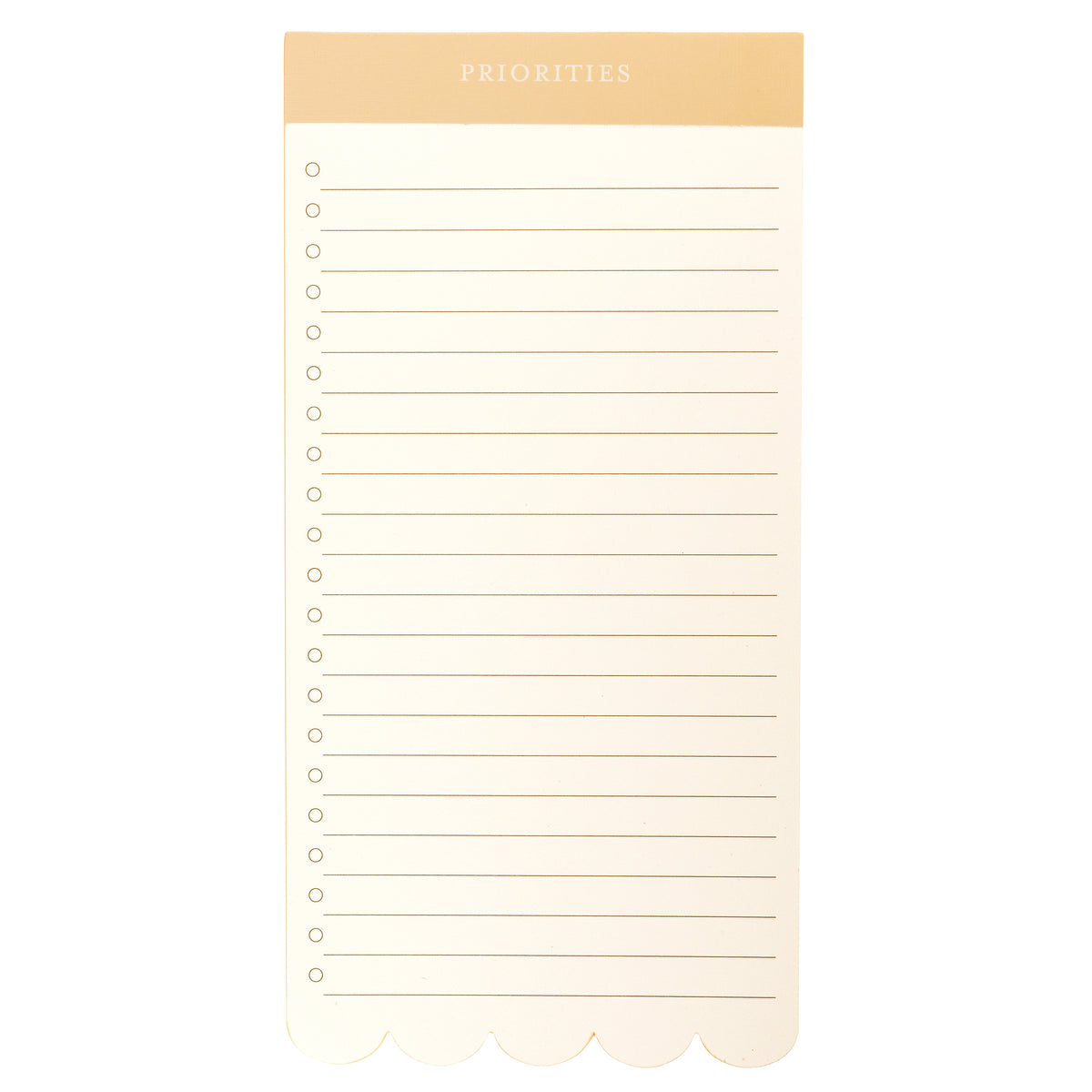 Function meets chic! With its adorable scallop die-cut bottom edge, this list pad is here to turn your to-do lists into a style statement. Perfect for jotting down your daily errands or brainstorming your next big idea, this pad adds a touch of whimsy to your desk while keeping you organized. It's not just a list pad; it’s a fashion-forward way to keep track of your tasks. Go ahead, make your lists as fabulous as you are!